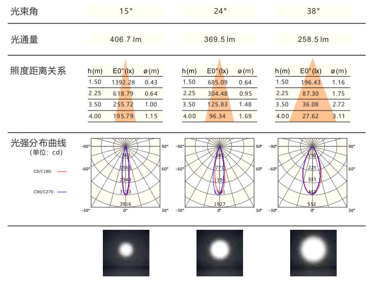 光束角:15°/24°/38°