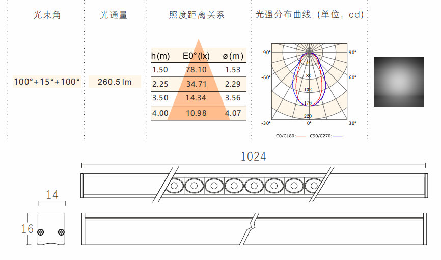 光束角:100°+30°+100°