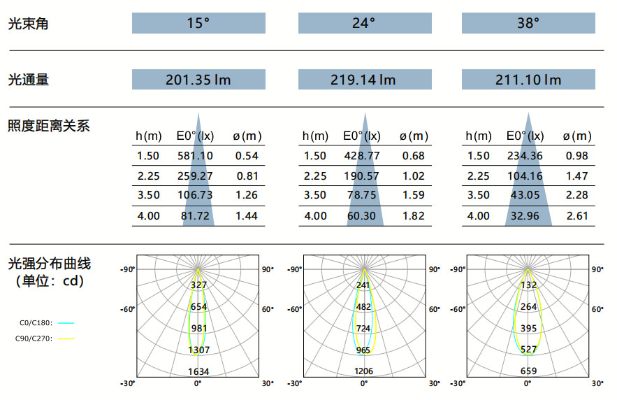 光束角:15°/24°/38°