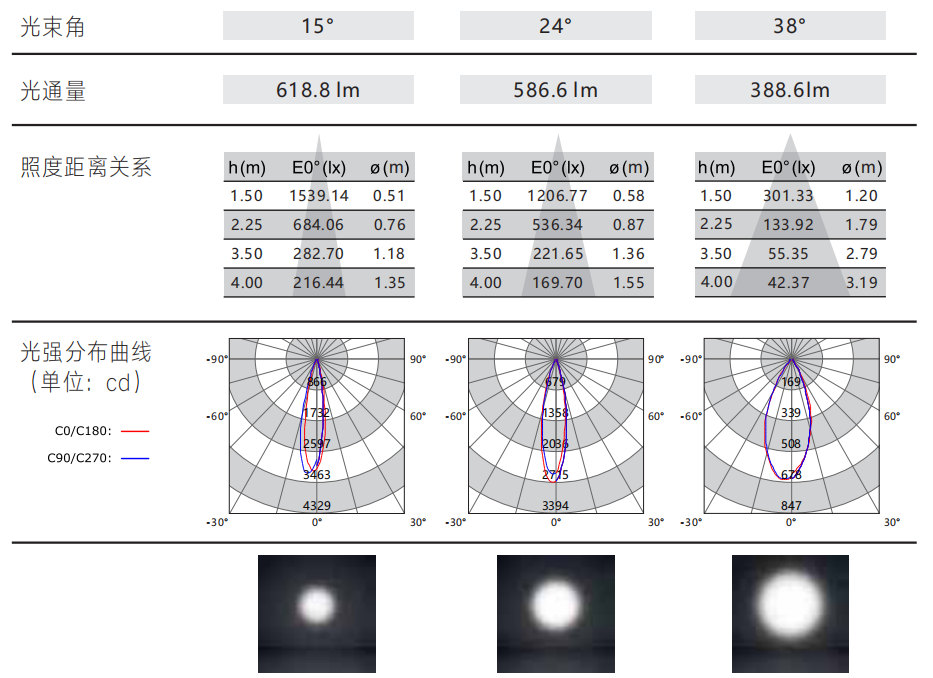 光束角:15°/24°/38°