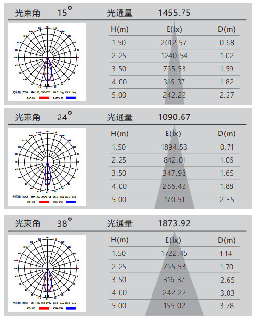 光束角:15°/24°/38°
