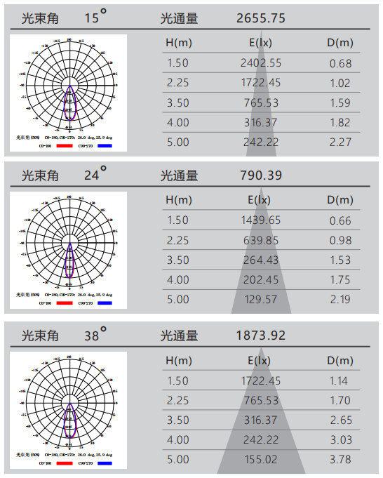 光束角:15°/24°/38°