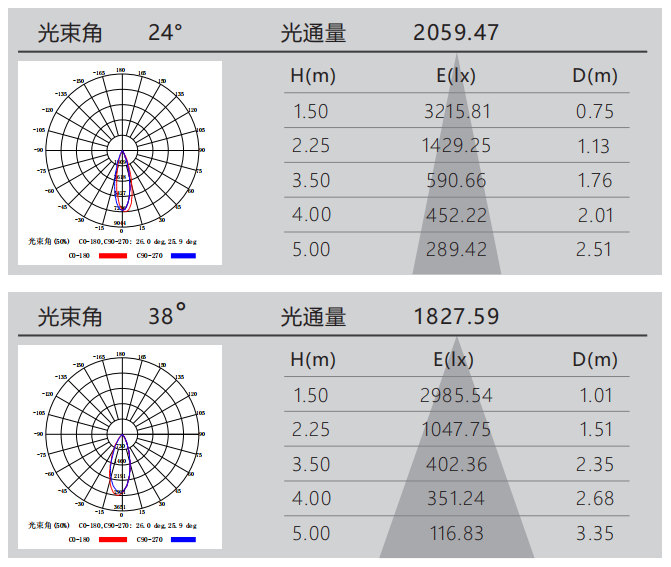 光束角:24°/38°