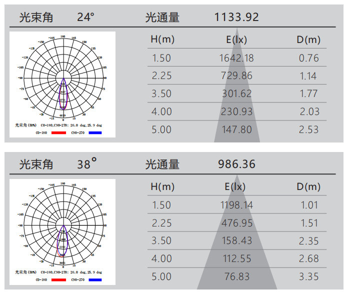 光束角:24°/38°