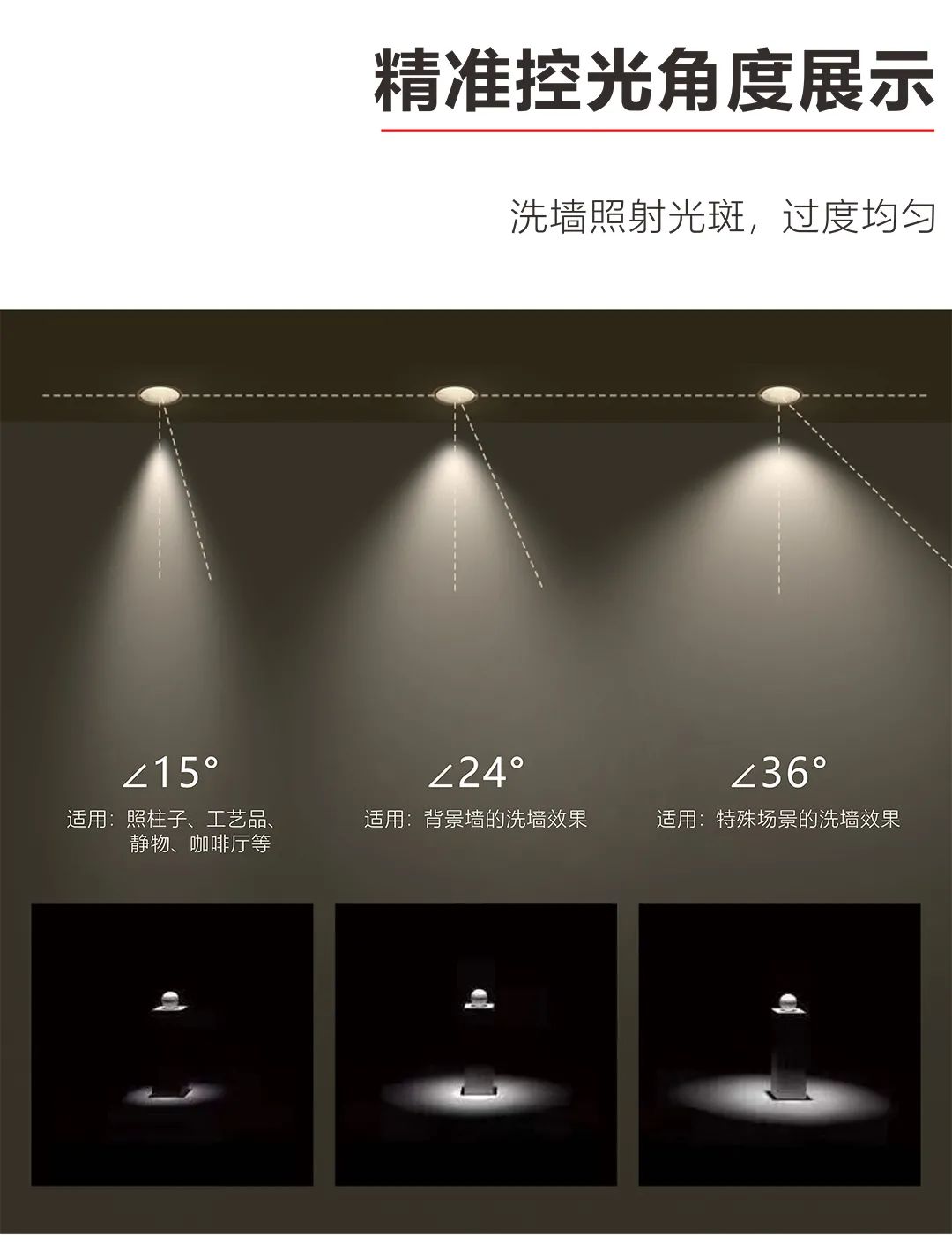 随着大家对生活品质要求越来越高,对光品质也越来越高,在家居照明中,光控角度对物品的加光效果,以及部分区域的重点照明功能也成为了家居生活中的重要组成部分。在商业照明中,如何正确的用光,实现光线的精准控制也是非常重要的。用光用得好,是可以为商场带来源源不断的客流,进而实现更大的商业价值。由此可见,灯光现已是人类生活中不可或缺的重要一环。SGcombin商照天花灯则是选用优质灯珠,光色均匀明亮,聚焦性能优异,性能更稳定更安全,有效延长灯珠使用寿命,发光柔和不伤眼,有效呵护视力健康!
