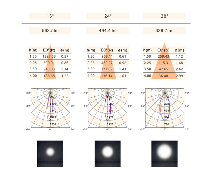 光 束 角 :15°/24°/38°