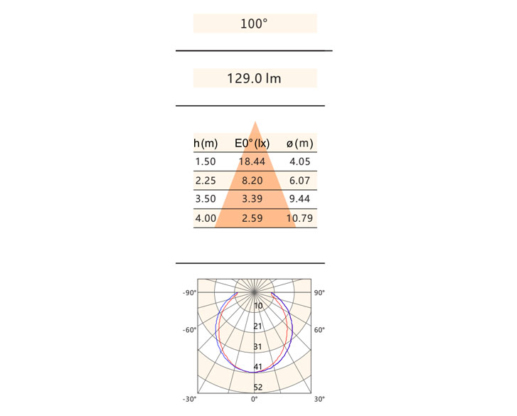光束⻆:100°