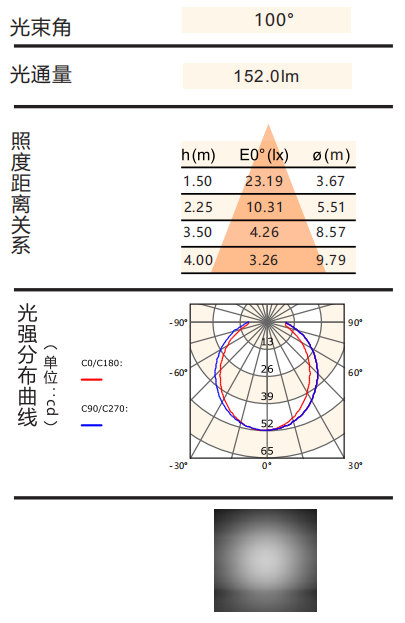 光束角:100°