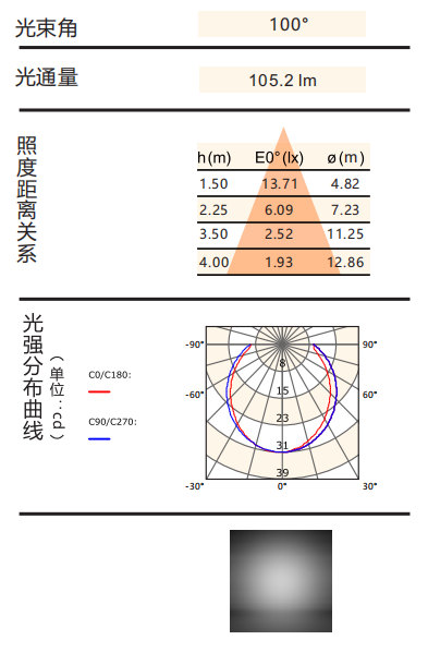 光束角:100°