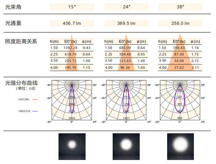光束角:15°/24°/38°