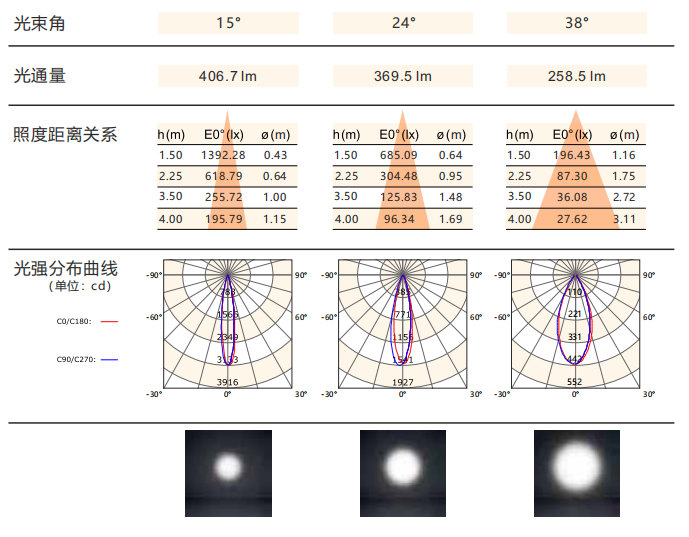 光束角:15°/24°/38°