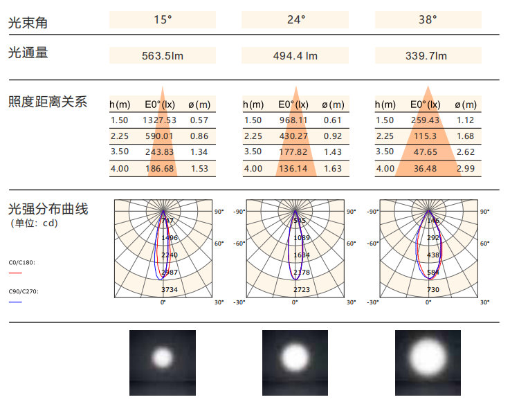 光束角:15°/24°/38°