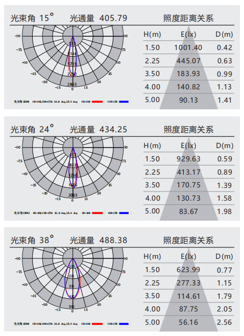 光束角:15°/24°/38°