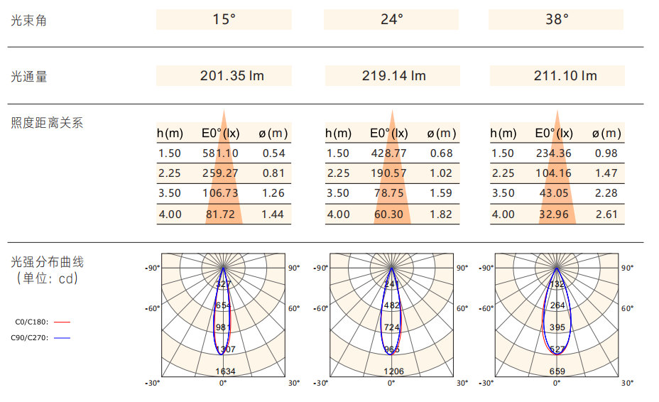 光束角:15°/24°/38°