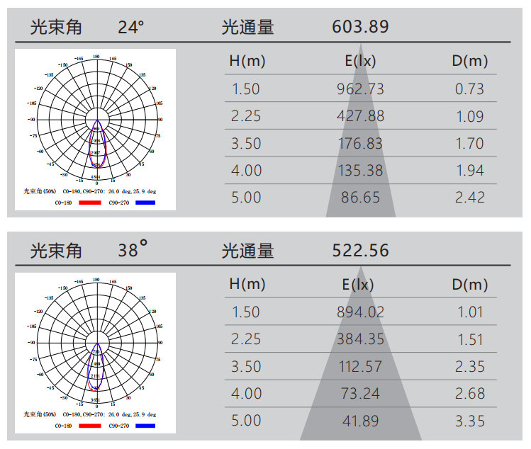 光束角:24°/38°