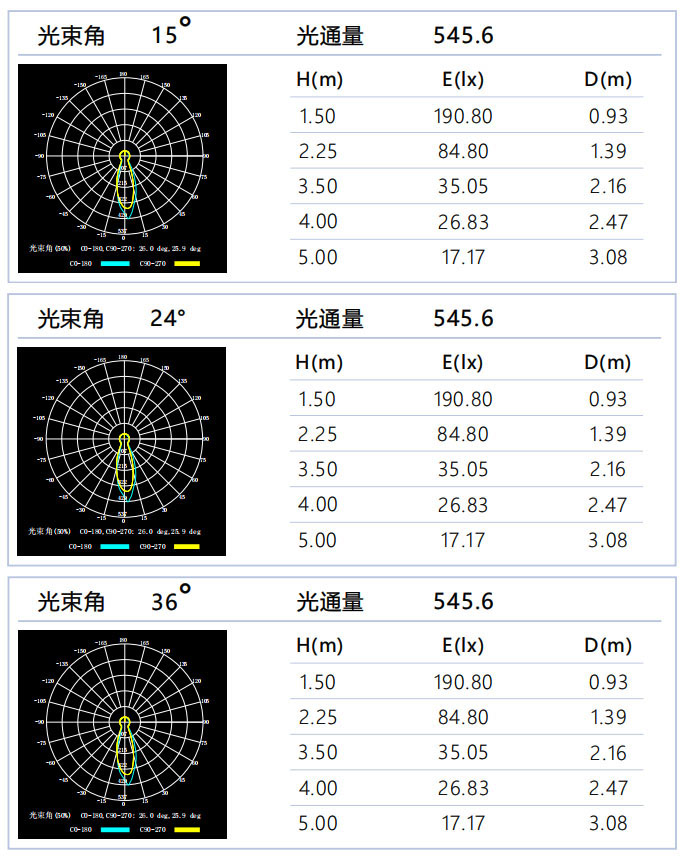 光束角:15°/24°/36°