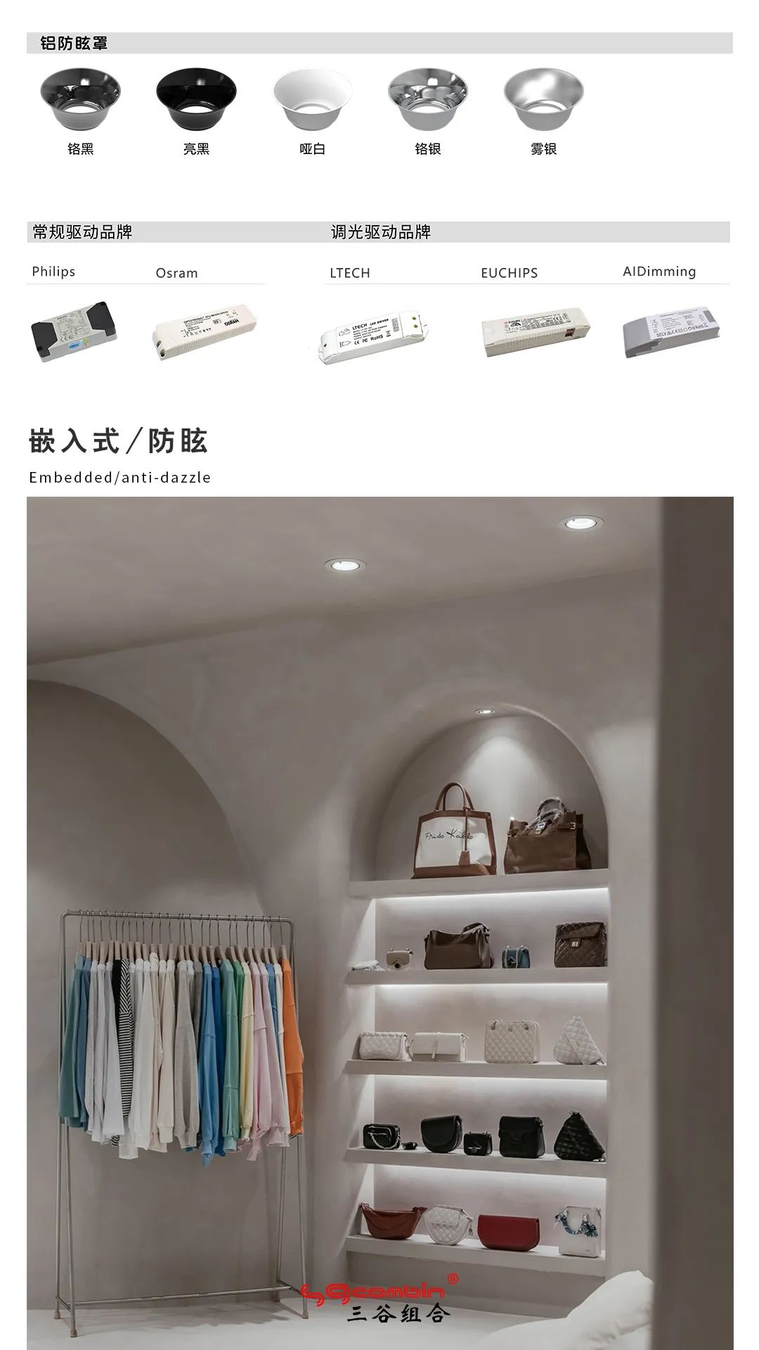 SGcombin研发团队,以创新精神为研发动力,以极致工艺为品质追求,通过对用户需求的洞察和设计的融合,不断提升照明产品品质与设计美感。本期,为大家介绍的新品——三谷照明商照天花灯。