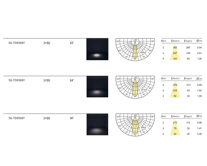 光束⻆:15°/24°/38°