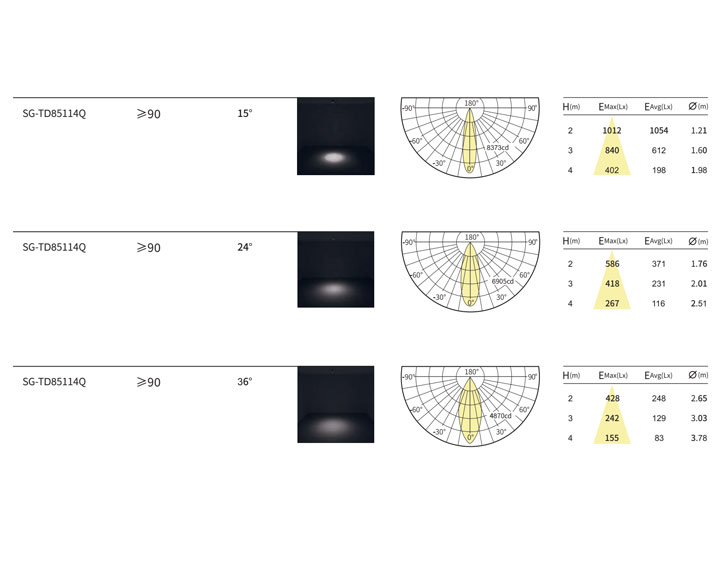光束⻆:15°/24°/38°