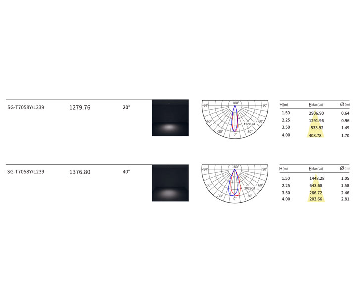 光束⻆:20°/40°