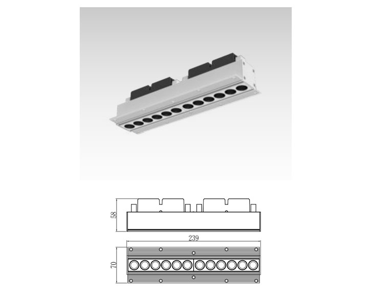 产品尺⼨:L239*W70*H58mm