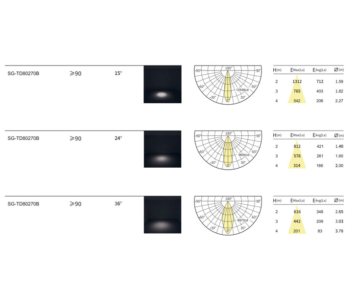 光束⻆:15°/24°/36°