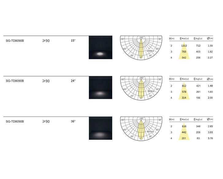 光束⻆:15°/24°/36°