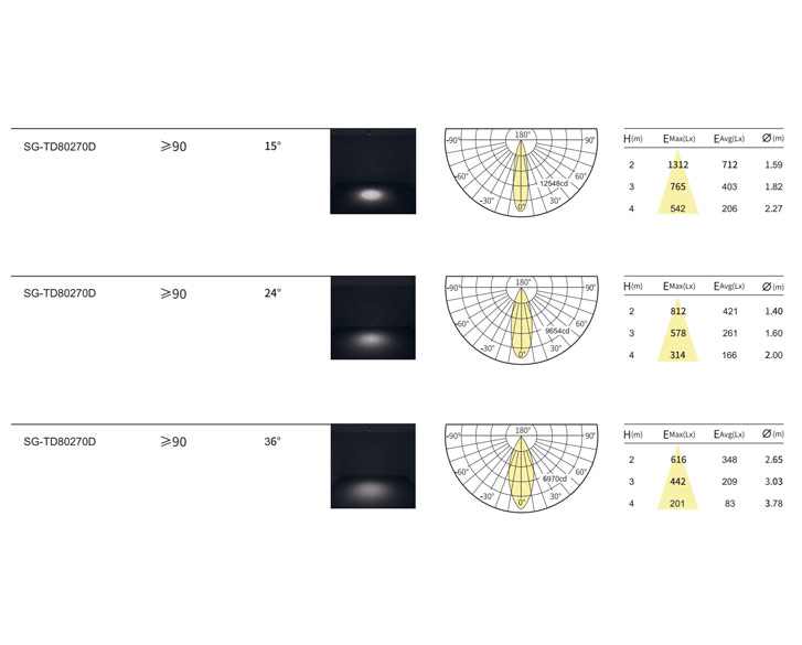 光束⻆:15°/24°/36°